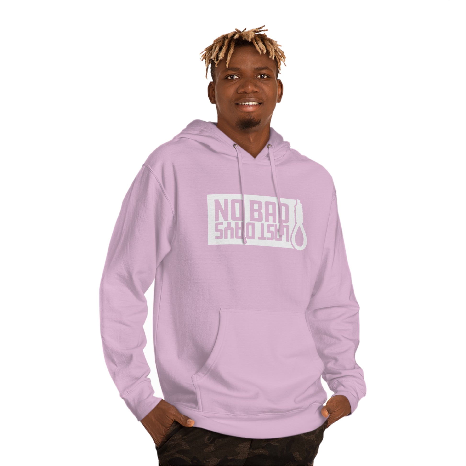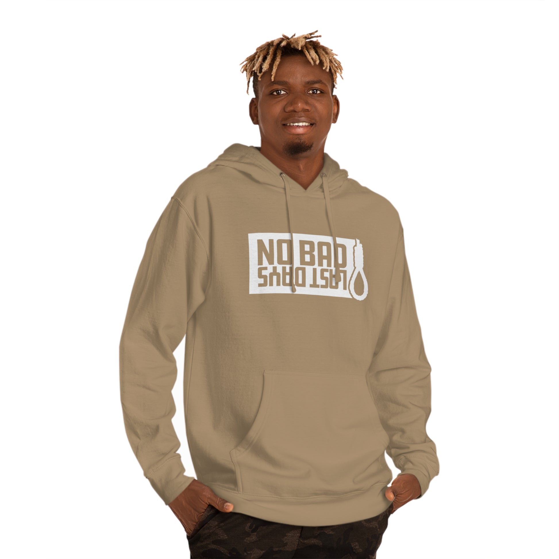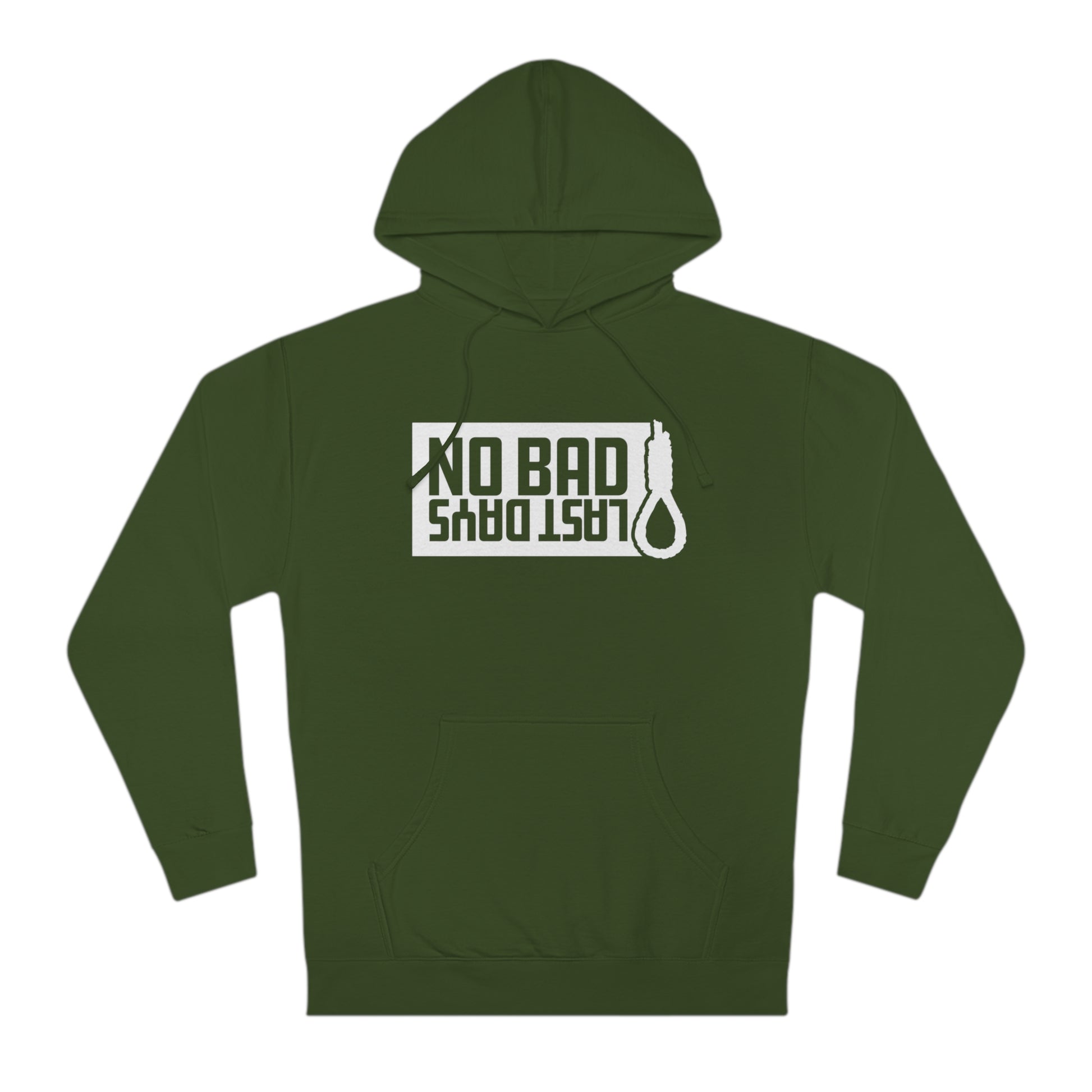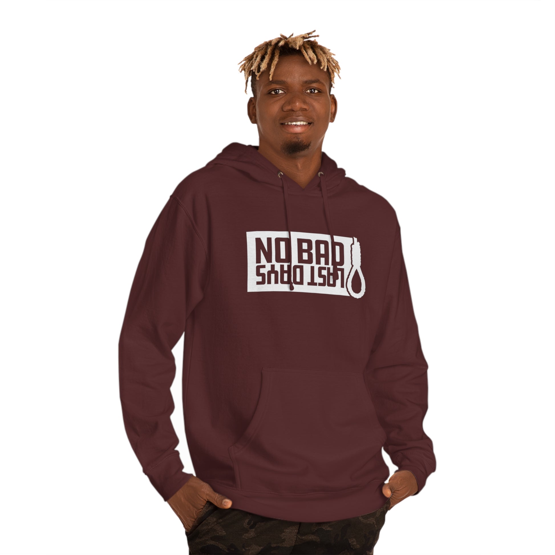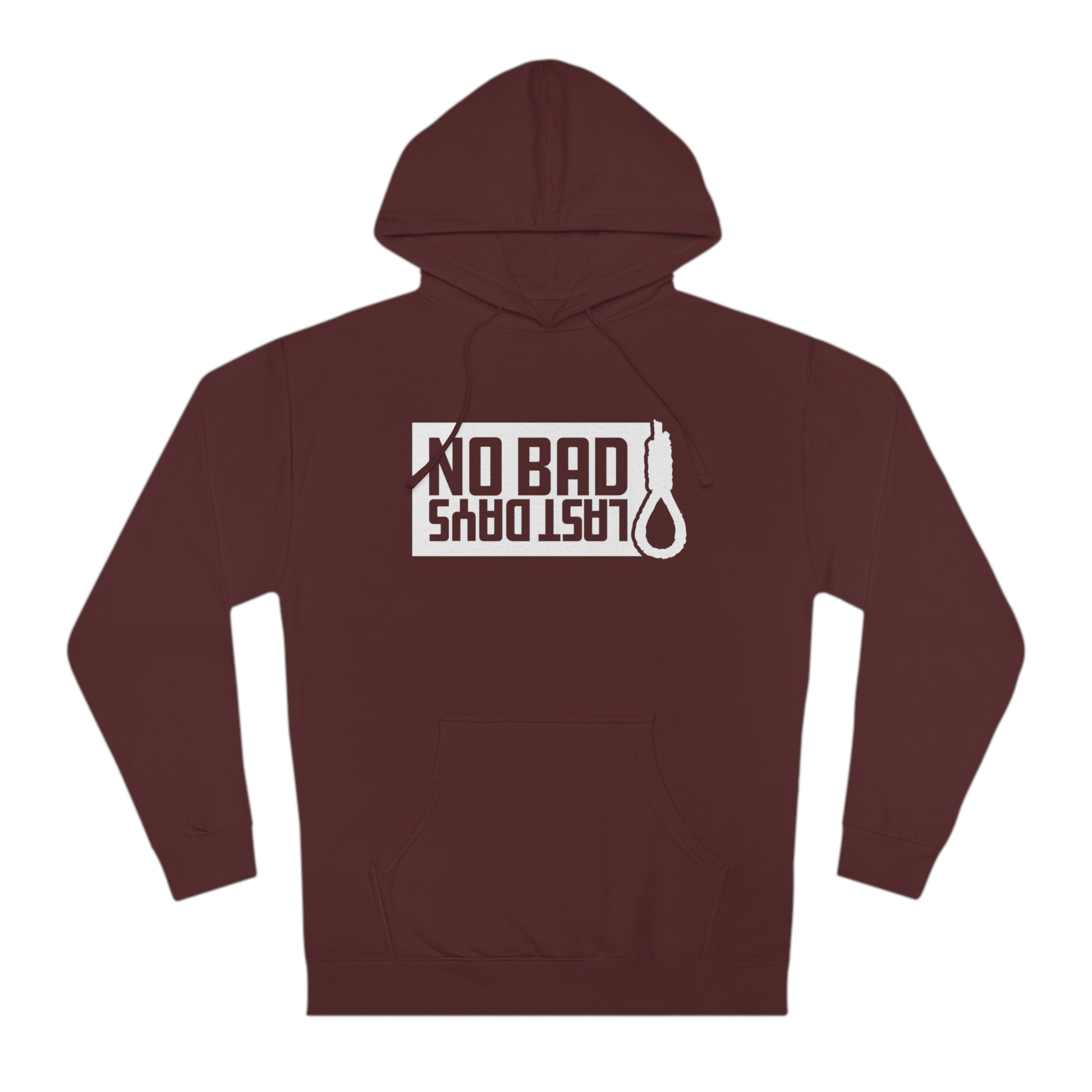 It might be your last day, but you won't go out cold!!! Warm, stylish, and perfect for those colder days. This bad boy is made with 65% cotton/35% polyester, and a 100% cotton face - a a blend that strikes the perfect balance between comfort and stretchiness. Each DWC hoodie comes with a 3-panel hood and a self-fabric, 1/2 moon patch on the neck area. (You know for that extra comfort while you put on the rope. ;) .: